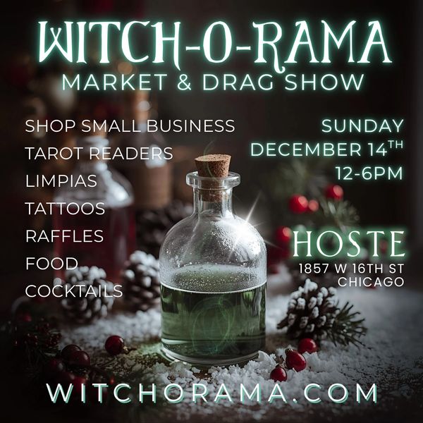 Get ready to jingle your bells Chicago! We're celebrating the Witch-O-Rama Market & Drag ShowSeason Finale with a Witchmas theme that will cast a spell of holiday cheer! This is our last show of 2025, so join us for a darkly dazzling day of magic, merriment, and unforgettable drag!